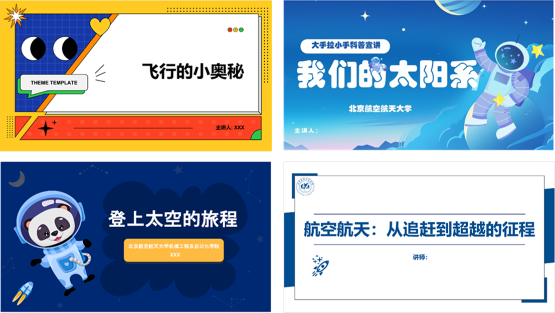 講師團(tuán)根據(jù)小學(xué)生不同年級(jí)特點(diǎn),專兼職輔導(dǎo)員帶領(lǐng)集中備課,骨干講師迭代細(xì)化打磨,以“互動(dòng)性、趣味性、前沿性”為特色,推出了四門精品航空航天科普課程:《飛行的奧秘》《認(rèn)識(shí)太陽系和宇宙》《登上太空的旅程》《航空航天:從追趕到超越的征程》。