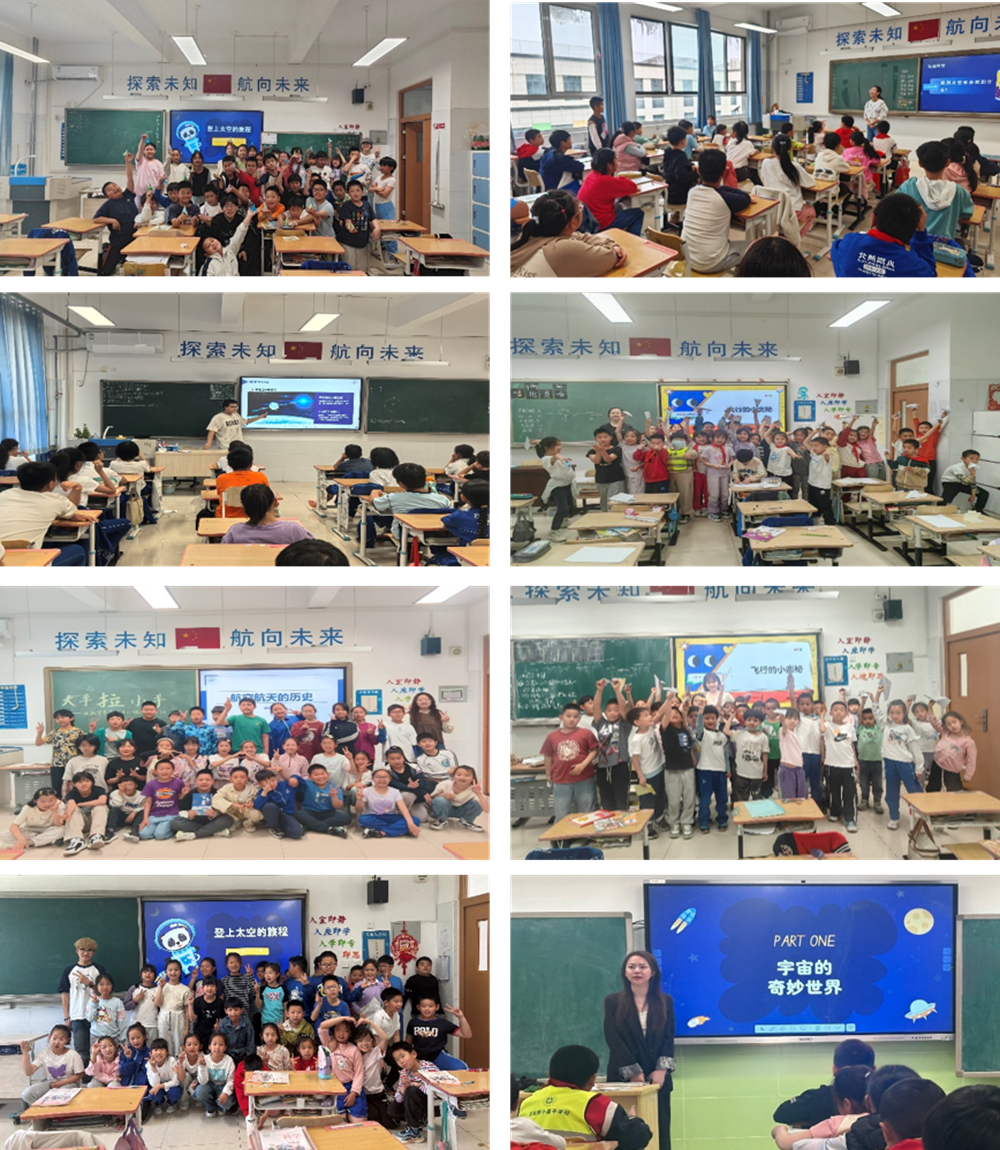 講師過彥琛同學(xué)說,“當(dāng)一(三)班孩子們睜大眼睛追問飛機(jī)為什么能飛時(shí),仿佛看到了曾經(jīng)的自己,小朋友們認(rèn)真地折疊紙飛機(jī),從中體會(huì)空氣動(dòng)力學(xué)的神奇,我們也在講授中重拾了對(duì)科學(xué)技術(shù)最純粹的赤誠,這是一場雙向奔赴的成長。”講師王馨悅同學(xué)說,“當(dāng)看到二(四)班各位小航家對(duì)飛行器發(fā)展歷史而驚嘆、發(fā)光的眼神,我深刻體會(huì)到科普的意義不僅是傳遞知識(shí),更是點(diǎn)燃好奇與夢想。”講師陳涯同學(xué)說,“通過為五(四)班小朋友講授航空航天發(fā)展史課程深刻感受到科普教育的魅力,從熱氣球到空間站,孩子們眼里的光芒讓我明白一個(gè)個(gè)小小未來總師夢想正站在我們面前,他們的征途是星辰大海。”