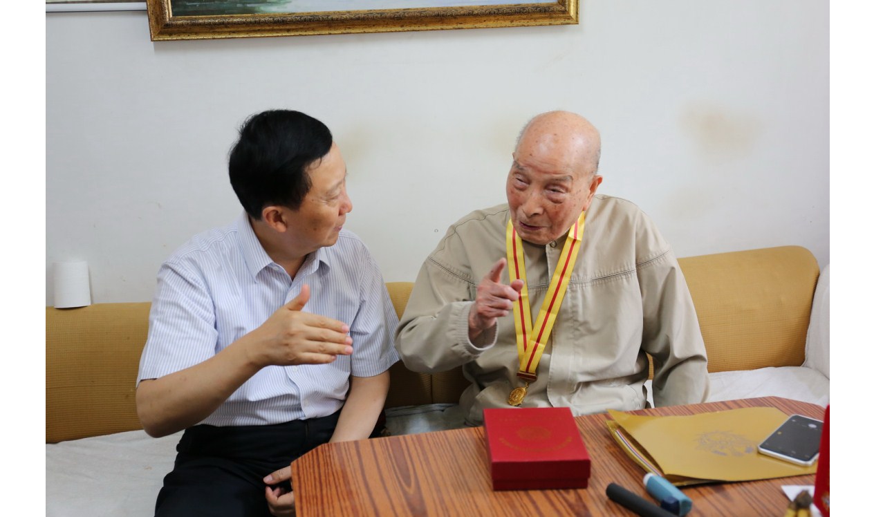 9月6日,在中國人民抗日戰(zhàn)爭暨世界反法西斯戰(zhàn)爭勝利70周年來臨之際,校黨委書記胡凌云教授專程看望慰問了抗戰(zhàn)老戰(zhàn)士、北航建校元老、我院退休老教師百歲老人王洪星教授,并向他送去了由中共中央、國務(wù)院、中央軍委頒發(fā)的紀(jì)念中國人民抗日戰(zhàn)爭勝利70周年紀(jì)念章,校長助理、黨政辦公室主任李軍峰、離退休工作處處長白致銘、機(jī)械學(xué)院黨委書記鄧怡陪同慰問。