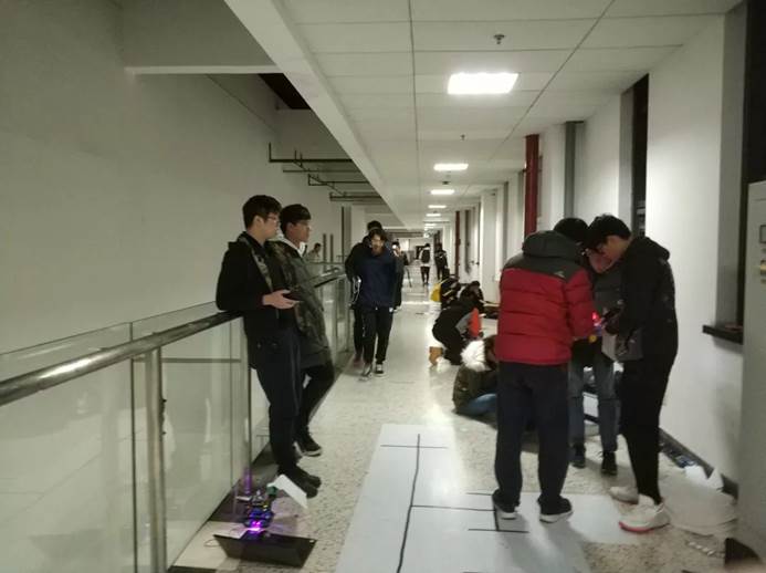 初賽前,同學(xué)們都使出了渾身解數(shù),除了機(jī)器人協(xié)會(huì)組織的四次培訓(xùn)之外,大家也都在盡自己最大的努力。在比賽的前一天晚上,大家的熱情達(dá)到了最高峰,沒(méi)有桌子?無(wú)所謂;沒(méi)有椅子?無(wú)所謂。樓道里遍布著參賽隊(duì)伍,在比賽前的最后一刻決不放棄。