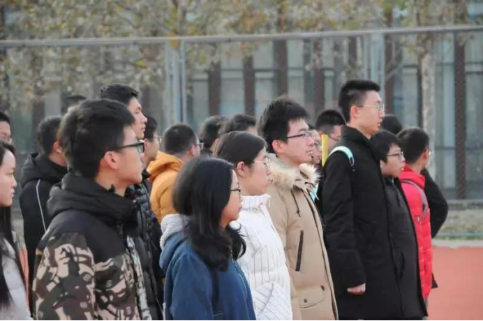 國歌響起,國旗緩緩升起,同學(xué)們唱起國歌,人數(shù)不多但也很是莊嚴(yán)肅穆。升旗完畢,實踐委員在國旗下進行演講,他鼓勵大家,不忘初心,砥礪前行。
