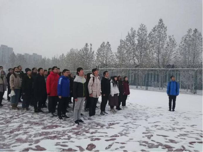 “ 今天早上,我們舉行了升旗儀式,剛下過雪,操場上已經(jīng)積了一層厚厚的雪,天剛剛亮,并不十分晴朗。我們踏著積雪而來,在晨光中舉行升旗儀式。