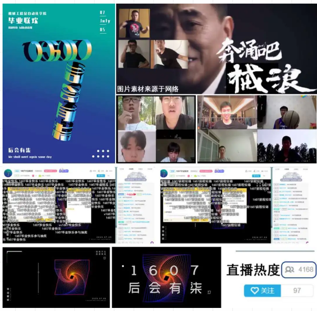 2020年7月5日,機(jī)械工程及自動(dòng)化學(xué)院2020屆本科畢業(yè)生云畢業(yè)晚會(huì)在bilibili直播平臺(tái)舉行。機(jī)械學(xué)院相關(guān)領(lǐng)導(dǎo)老師、畢業(yè)班班主任、1607大班輔導(dǎo)員、機(jī)械學(xué)院2020屆195名本科生及家長(zhǎng)參加云晚會(huì),晚會(huì)觀看人次達(dá)4168。晚會(huì)由馬靜文、牛遲等同學(xué)主持。