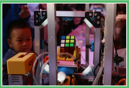 北航機(jī)器人隊(duì)傾囊相助,為校慶嘉年華提供了魔方機(jī)器人?,F(xiàn)場(chǎng)挑戰(zhàn)的人排起了長(zhǎng)隊(duì),人類(lèi)和人工智能的比拼正式在北航68年校慶當(dāng)天拉開(kāi)帷幕。悄悄告訴你們,其實(shí)這次機(jī)器人放水了喲,其實(shí)他九秒鐘就能還原整個(gè)魔方了!
