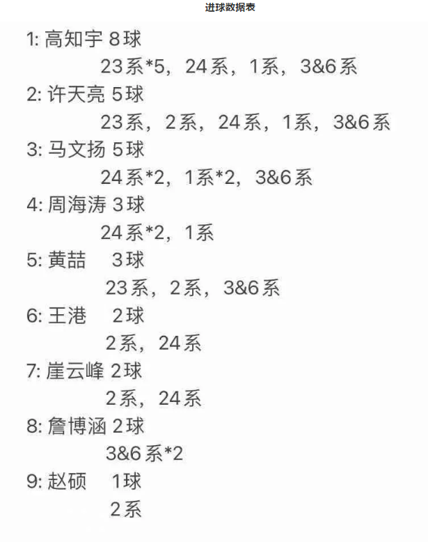 三場(chǎng)小組賽,7系(機(jī)械學(xué)院)面對(duì)23系(高等理工學(xué)院)、18系(北京學(xué)院)、2系(電子信息學(xué)院),比分分別為7:1、0:1、5:0,積分6分以A組小組第一的身份成功出線,晉級(jí)八強(qiáng)。值得一提的是,在第二輪比賽中球隊(duì)失利,出線形勢(shì)一度十分嚴(yán)峻,但隊(duì)員們沒有氣餒,及時(shí)反思調(diào)整,團(tuán)結(jié)一致,最終成功挺進(jìn)淘汰賽,并成為本屆小組賽階段進(jìn)球最多(12個(gè)),失球最少(2個(gè))的球隊(duì)。