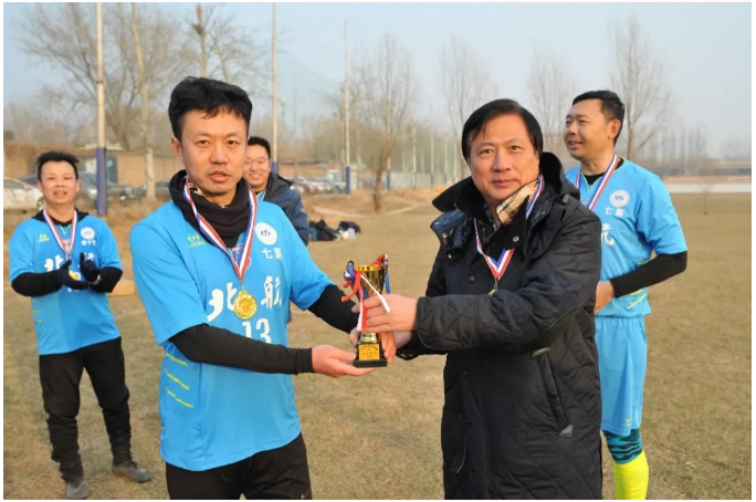 01級(jí)本科生徐大為,前校隊(duì)主力前鋒打入5粒進(jìn)球,成為球隊(duì)最佳射手。為他們頒獎(jiǎng)的是7系80級(jí)本科生,原校隊(duì)主力中后衛(wèi)畢正中。
