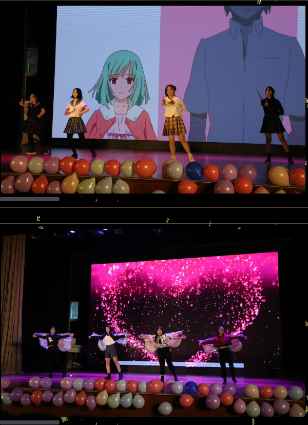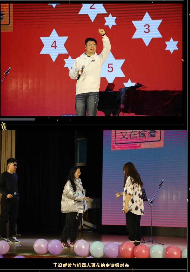 在兩位經(jīng)驗(yàn)豐富的主持人半即興的串場下,我們大班的一名名身手不凡的“斜杠”青年們輪番上臺表演。唱、跳、rap兼具,文體兩開花!正是“八仙過海,各顯神通?!爆F(xiàn)在讓我們跟隨主持人的腳步,來回顧一下晚會那些精彩紛呈的節(jié)目吧。