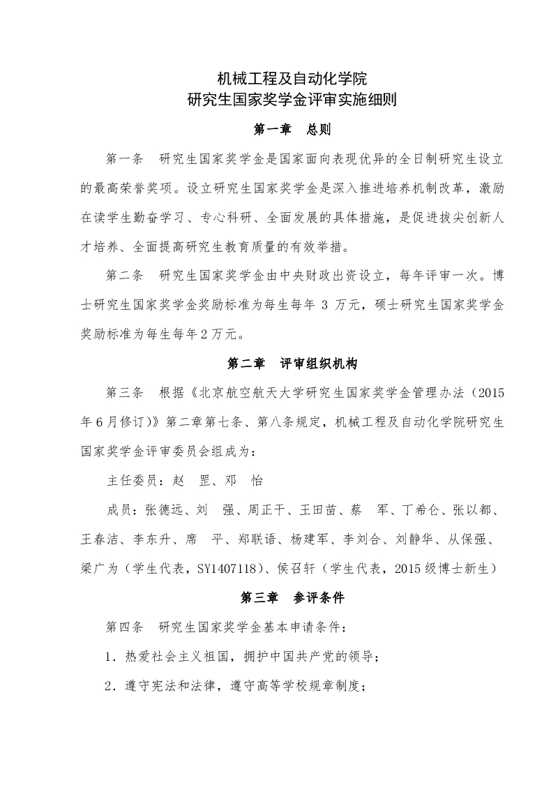 機械工程及自動化學(xué)院研究生國家獎學(xué)金評審實施細則