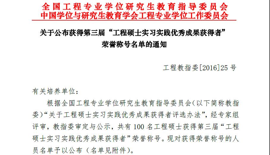 我院學(xué)生王倫獲第三屆“工程碩士實(shí)習(xí)實(shí)踐優(yōu)秀成果”