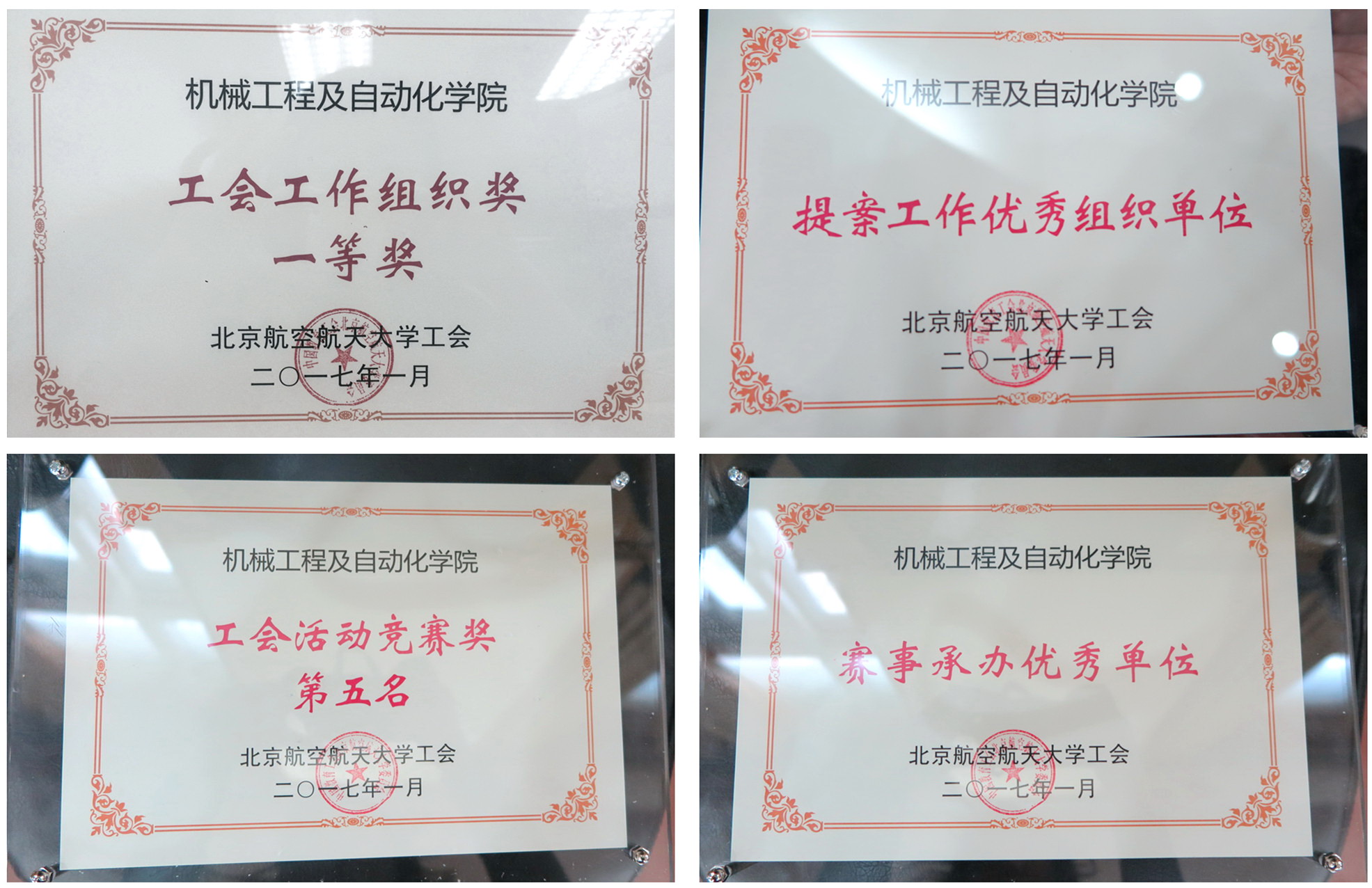 2017年1月17日,校工會在思源樓二層多功能廳舉行“幸?!?016”工會工作總結(jié)表彰會。我院教代會代表、黨委書記鄧怡、工會主席祁曉野、常務(wù)副主席梁永建、工會委員、工會工作先進(jìn)個人獲獎代表參加表彰大會。 表彰大會以“攜手并進(jìn),共迎2017”作為開場視頻,帶動全場與會人員的熱情,營造出一片祥和熱烈的氣氛;視頻結(jié)束,主持人引出本次表彰會的主題“幸福·2016”,并與多位嘉賓進(jìn)行現(xiàn)場“眾口說幸福”環(huán)節(jié),互動全場。我院黨委鄧怡書記作為“幸福故事”講述特邀嘉賓,從“我愛春天”大步走活動講起,細(xì)細(xì)回味著這一年來的北航,與會人員一同回顧了過去一年在北航收獲的幸福,2016年工會人共創(chuàng)的美好時光一幕幕回放在現(xiàn)場。 在校黨委、校工會、學(xué)院黨委的領(lǐng)導(dǎo)和指導(dǎo)下,以祁曉野主席為核心的機(jī)械學(xué)院第五屆工會委員會全面履行學(xué)院工會各項職責(zé),在工會工作中不斷突破創(chuàng)新,塑造優(yōu)良的氛圍陶冶情操、增進(jìn)友誼,通過有益的活動凝聚人心、鼓舞斗志,在2016年度工會工作中取得了一系列優(yōu)秀成績。 2016年,學(xué)院工會在文體活動中依然領(lǐng)跑全校院系。在北航教職工乒乓球聯(lián)賽中,經(jīng)過全體參賽隊員的共同努力,機(jī)械工程及自動化學(xué)院教職工乒乓球代表隊獲得團(tuán)體季軍的好成績,這也是自2010年以來機(jī)械學(xué)院代表隊取得的最好成績,董保立老師在個人賽中摘得男子組單打第五名的好成績;5月,校工會主辦第二屆教職工“運(yùn)動嘉年華”,機(jī)械學(xué)院代表團(tuán)蟬聯(lián)了團(tuán)體總分第四名,院系冠軍的優(yōu)異成績, 同時,作為本屆嘉年華的承辦單位,我院派出了一支充滿活力的學(xué)生志愿者團(tuán)隊,參與到大會組織過程中。 學(xué)院工會努力助力青年教師成長,青年教師聯(lián)合會在2016年度工作會議上邀請趙罡院長、張德遠(yuǎn)教授做報告,啟發(fā)職業(yè)規(guī)劃發(fā)展思路;學(xué)院工會關(guān)愛女教工健康,在第106個國際婦女節(jié)到來之際,邀請了國家高級評茶員周梓含女士和校醫(yī)院盧艷醫(yī)生,組織女教工健康養(yǎng)生茶道講座,帶來了實用的健康知識;學(xué)院工會關(guān)愛離退休教工,大力支持離退休老同志以黨支部為黨委組織活動,并為機(jī)器人所德高望重的宗光華教授和贠超教授舉辦了光榮退休茶話會。學(xué)院工會認(rèn)真營造民主和諧的學(xué)院氛圍,做好民主制度建設(shè)、院務(wù)公開和教代會提案等工作。 在學(xué)院工會委員會、學(xué)院全體教職工的共同努力下,機(jī)械學(xué)院圓滿完成了2016年度各項工會工作。大會表彰環(huán)節(jié),副校長魏志敏、校醫(yī)院黨委書記徐亞軍、宣傳部部長譚華霖、校工會常務(wù)副主席程文浩為獲獎的單位及個人頒獎。我院工會榮獲工會工作組織一等獎、賽事承辦優(yōu)秀單位、提案工作優(yōu)秀組織單位、工會活動競賽獎等多項獎勵,感謝校工會和學(xué)院黨委的關(guān)愛和幫助,感謝學(xué)院工會委員、工會小組長的辛勤工作,感謝全體教職工對學(xué)院工會工作的支持和理解! 附:機(jī)械學(xué)院工會2016年總結(jié)表彰名單 工會優(yōu)秀組織一等獎:機(jī)械工程及自動化學(xué)院工會 賽事承辦優(yōu)秀單位:機(jī)械工程及自動化學(xué)院工會 教代會提案工作優(yōu)秀組織單位:機(jī)械工程及自動化學(xué)院工會 工會活動競賽獎第五名:機(jī)械工程及自動化學(xué)院工會 工會工作先進(jìn)個人:趙力元、鄭敏信、陳甜甜、董保立 優(yōu)秀工會主席:祁曉野 教職工之友:鄧怡 提案工作先進(jìn)個人:郭衛(wèi)東、陳殿生、王美清、祁曉野、鄧怡 機(jī)械工程及自動化學(xué)院工會 2017年1月23日