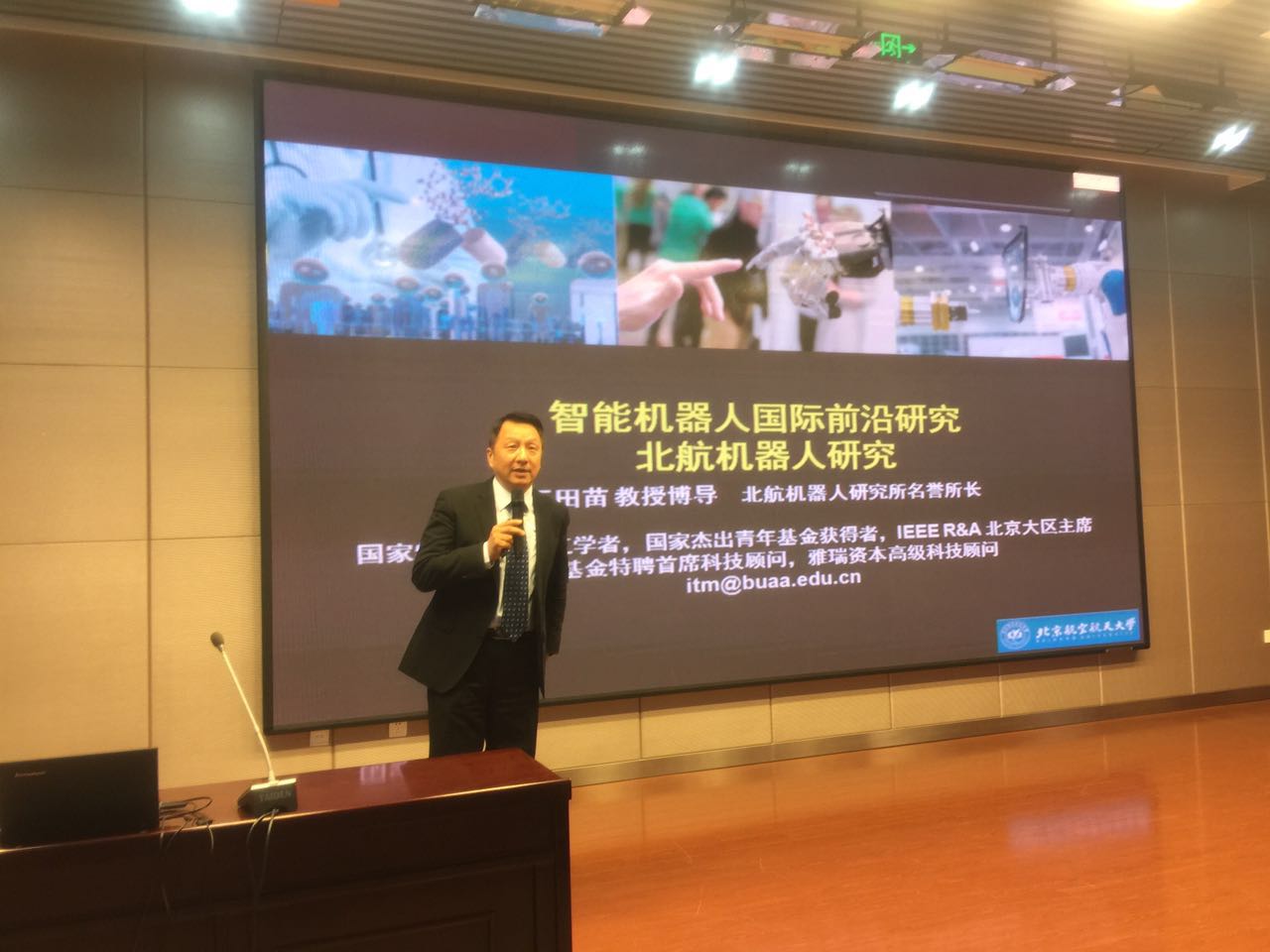 10月14日下午,北航河北招生組組長(zhǎng)、機(jī)械工程及自動(dòng)化學(xué)院黨委書記鄧怡,機(jī)械工程及自動(dòng)化學(xué)院王田苗教授赴河北省石家莊二中進(jìn)行招生宣講工作,與石家莊二中校領(lǐng)導(dǎo)進(jìn)行了會(huì)面,并為石家莊二中300余位同學(xué)做了兩場(chǎng)主題報(bào)告。鄧怡書記從“選擇北航的十個(gè)理由”為切入點(diǎn),對(duì)北航的校園環(huán)境、科研水平、人才培養(yǎng)、師資隊(duì)伍等整體情況進(jìn)行了介紹,并對(duì)北航的招生政策和學(xué)生關(guān)心的問題進(jìn)行了說明。鄧怡書記鼓勵(lì)同學(xué)們追求夢(mèng)想,腳踏實(shí)地,并歡迎大家報(bào)考北京航空航天大學(xué)。王田苗教授做了題為《智能機(jī)器人國(guó)際前沿研究》的主題報(bào)告,報(bào)告從南極科考展開,詳細(xì)介紹了人工智能與機(jī)器人的發(fā)展歷程以及國(guó)際機(jī)器人研究中的新材料、人工智能和深度學(xué)習(xí)等三個(gè)前沿發(fā)展方向,帶給學(xué)生一場(chǎng)國(guó)際機(jī)器人前沿領(lǐng)域的科技大餐。王田苗教授還介紹了北航機(jī)器人研究所的整體情況。報(bào)告會(huì)上不時(shí)響起一陣又一陣的掌聲。