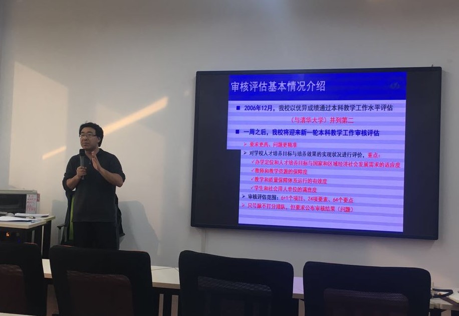 本科教學(xué)副院長于靖軍對本次審核性評估做了詳細(xì)介紹,主要從基本情況介紹、工作機構(gòu)及分工、工作進(jìn)展情況等方面展開,并對專家進(jìn)校期間的工作日程、工作內(nèi)容、具體審查案例等進(jìn)行了重點介紹。之后于靖軍副院長對學(xué)院的具體工作安排做了布置,并對全體教工提出了專家進(jìn)校評估期間的具體要求。