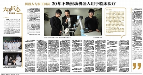 《新京報(bào)》:機(jī)器人專家王田苗20年不斷推動(dòng)機(jī)器人用于臨床醫(yī)療