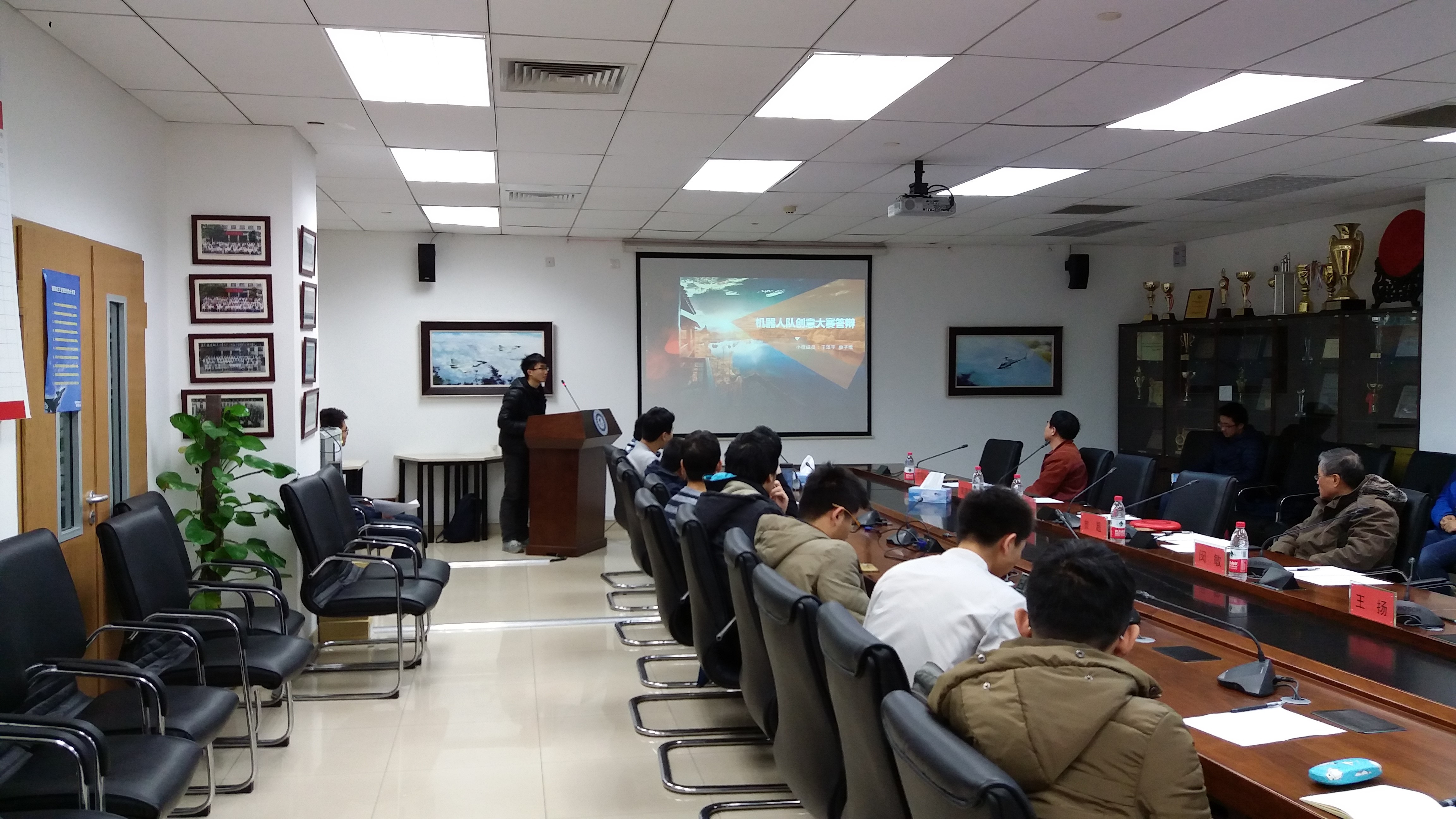 在機(jī)器人方案設(shè)計(jì)大賽答辯進(jìn)行完后,機(jī)器人隊(duì)召開了技術(shù)報(bào)告會(huì)。會(huì)議上,機(jī)器人隊(duì)隊(duì)長梁超介紹了機(jī)器人隊(duì)近期的工作進(jìn)展,提出了機(jī)器人競賽的核心技術(shù)問題,并就這些問題與在座的老師進(jìn)行了深入交流,共同尋求解決方案。通過這一次會(huì)議,北航機(jī)器人隊(duì)必將對(duì)目標(biāo)有更清晰的認(rèn)知,也勢(shì)必在全國機(jī)器人大賽中力爭上游,發(fā)揮出北航學(xué)子的應(yīng)有水平。