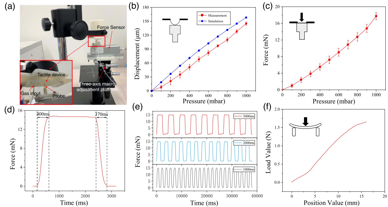 圖3 高空間分辨率微流體觸覺裝置整體性能評(píng)估