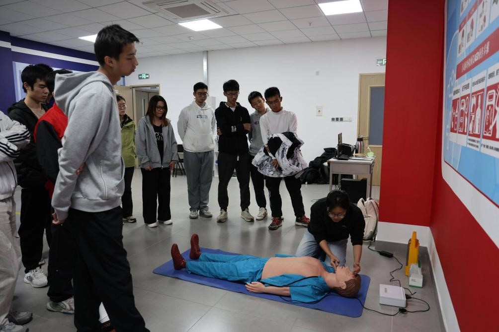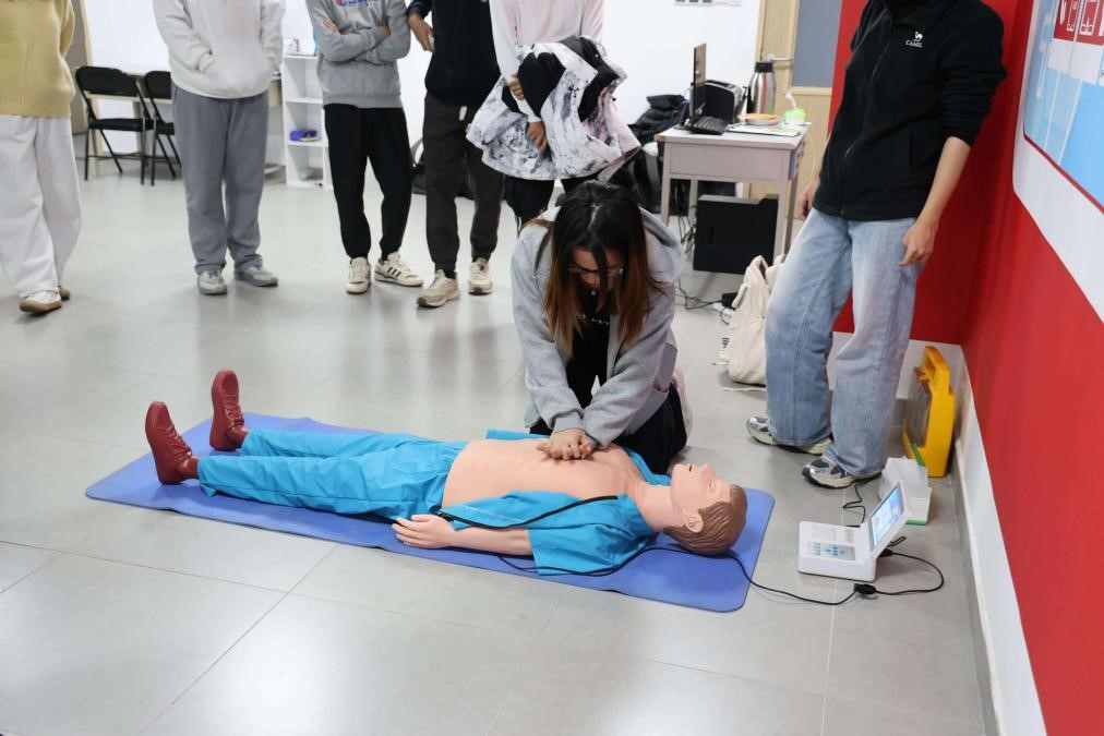 急救自護(hù)環(huán)節(jié)作為活動重要開篇,由體驗(yàn)館專業(yè)工作人員開展系統(tǒng)化教學(xué)。工作人員結(jié)合應(yīng)急救援實(shí)際場景,通過實(shí)物演示與細(xì)致講解,逐一拆解心肺復(fù)蘇(CPR)的核心要點(diǎn):明確胸骨中下段1/3處的精準(zhǔn)按壓位置,強(qiáng)調(diào)每分鐘按壓頻率與按壓深度,詳解“30:2”的按壓通氣節(jié)奏,同時提醒“按壓后迅速放松、避免沖擊性用力”等關(guān)鍵細(xì)節(jié)。針對AED設(shè)備使用,從開機(jī)啟動、電極片規(guī)范粘貼(區(qū)分成人與青少年粘貼部位),到等待設(shè)備分析、實(shí)施電擊除顫的全流程進(jìn)行分步指導(dǎo)。團(tuán)員在模擬人體模型上實(shí)操練習(xí),工作人員實(shí)時糾正“按壓深度不足”“通氣時未密封口鼻”等問題,幫助大家逐步掌握規(guī)范的急救流程,訓(xùn)練關(guān)鍵時刻能出手的“救命硬技能”。