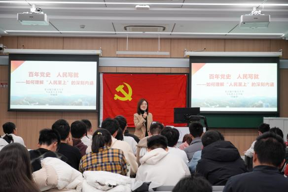 付麗莎老師在講授中生動(dòng)闡述了“堅(jiān)持人民至上”的深刻內(nèi)涵?!皥?jiān)持人民至上”是中國(guó)共產(chǎn)黨百年征程的制勝密碼、理論創(chuàng)新與實(shí)踐探索的核心主線,更是新時(shí)代治國(guó)理政的根本遵循。授課中,她從三個(gè)維度系統(tǒng)拆解這一重要理念:以革命戰(zhàn)爭(zhēng)年代推翻“三座大山”、抗日戰(zhàn)爭(zhēng)軍民同心等歷史事實(shí),闡明人民立場(chǎng)是黨的根本政治立場(chǎng);以脫貧攻堅(jiān)、科技創(chuàng)新等重大成就,印證人民主體是國(guó)家發(fā)展的力量源泉;以教育均衡、醫(yī)療完善、老舊小區(qū)改造等民生實(shí)事,詮釋人民幸福是黨不懈奮斗的終極目標(biāo)。結(jié)合以“空天報(bào)國(guó)”為內(nèi)核的北航精神,付老師進(jìn)一步引導(dǎo)機(jī)械青年,要扎實(shí)鉆研專業(yè)知識(shí)、對(duì)接國(guó)家戰(zhàn)略需求,以精湛技術(shù)回應(yīng)國(guó)家所需、人民所盼。