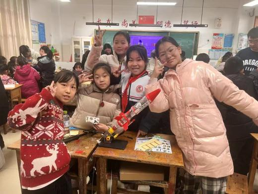 除此之外,張嘉慧同學(xué)還跟隨川航e家實(shí)踐隊(duì)前往山東德州尚德小學(xué),作為教務(wù)組核心成員,為同學(xué)們系統(tǒng)設(shè)計(jì)并講授了航空航天科普課程與實(shí)驗(yàn),寓教于樂(lè),理論與實(shí)踐相結(jié)合,在歡笑中激發(fā)孩子們對(duì)空天的向往。