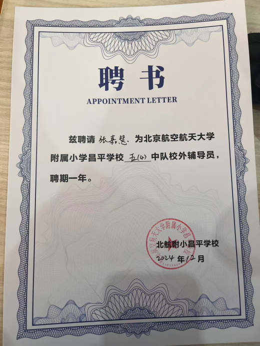 她作為北航附小昌平學(xué)校的校外輔導(dǎo)員,積極參與“大手拉小手”科普活動(dòng),為同學(xué)們帶來(lái)航空航天專題講座與互動(dòng)答疑,在交流中傳達(dá)精神,在科普中埋下向往。在一次次教學(xué)中,成為時(shí)空的擺渡人,將前輩的星辰大海,渡向下一代的夢(mèng)里心間。