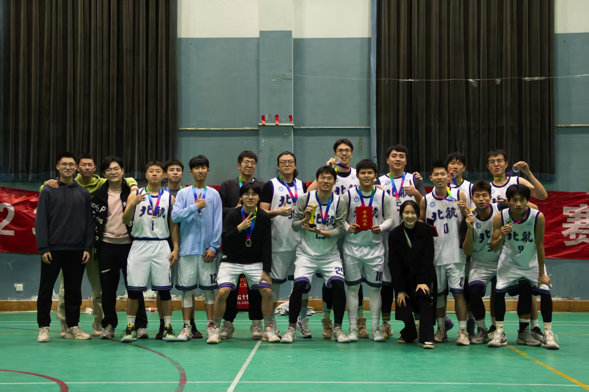北航機械學(xué)院籃球院隊是一支激情洋溢、朝氣蓬勃的隊伍。團隊氛圍融洽溫暖,既有訓(xùn)練場上全力以赴的汗水,也有平日相處中親如兄弟的歡笑。我們堅持每周兩次系統(tǒng)訓(xùn)練,注重技術(shù)打磨、戰(zhàn)術(shù)配合與體能提升的有機結(jié)合。近年來,球隊在賽場上穩(wěn)步前行、屢創(chuàng)佳績:2023年奪得“航籃杯”總冠軍,2024年躋身四強,今年再次斬獲“航籃杯”總冠軍——這些榮譽,是全隊拼搏精神的最佳見證。除了訓(xùn)練與比賽,我們還經(jīng)常組織聚餐、團建等活動,在一次次相聚中凝聚團隊力量、深厚隊友情誼。