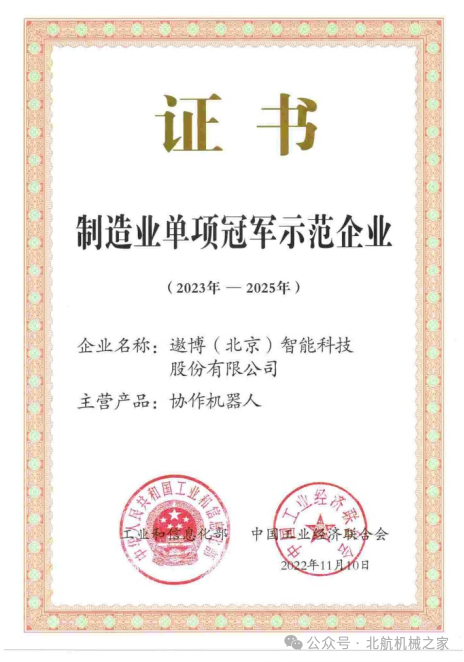 校企深度合作推動(dòng)企業(yè)迅速成長(zhǎng)為行業(yè)引領(lǐng)者:2015年發(fā)布國(guó)內(nèi)首臺(tái)協(xié)作機(jī)器人;2016年建成首個(gè)產(chǎn)業(yè)化基地;2018年成為國(guó)內(nèi)首家通過(guò)PL = d安全認(rèn)證的協(xié)作機(jī)器人企業(yè);2020年建成首條“協(xié)作機(jī)器人生產(chǎn)協(xié)作機(jī)器人”柔性生產(chǎn)線;2021年銷量破萬(wàn)臺(tái),入選專精特新“小巨人”企業(yè);2022年獲國(guó)家制造業(yè)單項(xiàng)冠軍;2023年推出自主全棧式機(jī)器人操作系統(tǒng),打破國(guó)外壟斷,實(shí)現(xiàn)核心部件至整機(jī)產(chǎn)品的全鏈條自主可控。2025年,遨博協(xié)作機(jī)器人助力“天工”人形機(jī)器人在全球首場(chǎng)人形機(jī)器人半程馬拉松中奪冠,標(biāo)志我國(guó)協(xié)作機(jī)器人技術(shù)躋身國(guó)際領(lǐng)先行列。