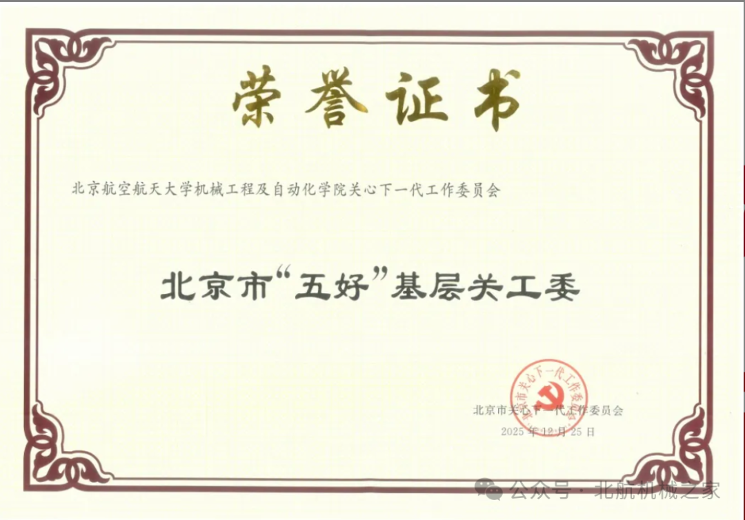 近日,北京教育系統(tǒng)關(guān)工委2026年度工作會勝利召開。北航機(jī)械學(xué)院關(guān)心下一代工作委員會(以下簡稱“機(jī)械學(xué)院關(guān)工委”)憑借扎實的工作基礎(chǔ)和鮮明的育人特色成功獲評北京市“五好”基層關(guān)工委!