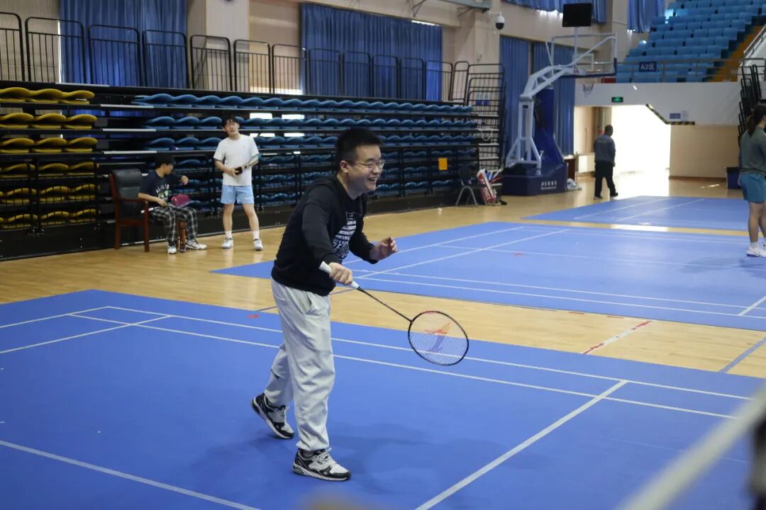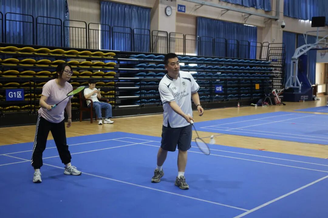 本次羽毛球賽不僅是同學們的賽場,也迎來了特別的參與者——輔導員也換上運動裝備,走上球場,與同學們并肩揮拍、同臺競技。發(fā)球、起跳、扣殺,每一個動作都干脆利落;場上切磋交流,場下歡聲笑語,平日里悉心陪伴的導員,此刻化身默契隊友與友好對手,用汗水拉近了彼此的距離。