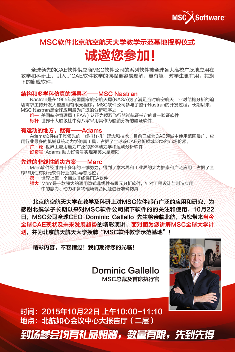 MSC軟件北京航空航天大學(xué)示范教學(xué)基地授牌儀式誠邀您參加!
