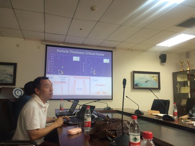 2015年6月15日星期一,美國(guó)肯塔基大學(xué)化工與材料工程系終身副教授翟同廣教授做客北航機(jī)械學(xué)院,翟同廣教授在新主樓A849會(huì)議室為北航機(jī)械學(xué)院老師、學(xué)生做了題為《A microstructure-based model for simulation of short fatigue crack growth in 3-D》的專題報(bào)告,報(bào)告于上午9:30正式開始,機(jī)械學(xué)院眾多老師均參加了報(bào)告,大約有40名研究生、博士生參加了此次報(bào)告會(huì),報(bào)告會(huì)由郭偉老師主持。 翟同廣教授首先對(duì)美國(guó)肯塔基大學(xué)化工與材料工程系進(jìn)行了簡(jiǎn)要的介紹,同時(shí)簡(jiǎn)略介紹了實(shí)驗(yàn)裝備、研究?jī)?nèi)容等情況,大家對(duì)美國(guó)肯塔基大學(xué)化工與材料工程系有了大致的了解。然后翟同廣教授講到了本次報(bào)告會(huì)的主題內(nèi)容,首先是微觀結(jié)構(gòu)為基礎(chǔ)定量計(jì)算合金疲勞裂紋啟裂及短裂紋擴(kuò)展壽命,這一方法雖然簡(jiǎn)單,卻在工程應(yīng)用中具有非常高的實(shí)用價(jià)值;隨后翟教授為大家講解了鋁合金設(shè)計(jì)研發(fā),微觀結(jié)構(gòu)-性能關(guān)系機(jī)理等。 翟同廣教授講完報(bào)告后,現(xiàn)場(chǎng)進(jìn)入到討論交流階段。各位同學(xué)和老師積極的發(fā)表自己的疑惑和見解與教授進(jìn)行討論,其中材料加工系系主任李劉合教授對(duì)報(bào)告內(nèi)容非常感興趣,與翟教授一同討論了焊接試樣的疲勞性能測(cè)試等問題。現(xiàn)場(chǎng)討論熱烈,學(xué)術(shù)氛圍濃厚。最后,報(bào)告會(huì)在與會(huì)師生的熱烈掌聲中結(jié)束。整個(gè)報(bào)告會(huì)上氣氛融洽,翟同廣教授的報(bào)告內(nèi)容引人入勝,方法、思路新穎,開闊了大家的眼界,讓大家收獲 頗豐。 材料加工與控制系 2015年6月26日