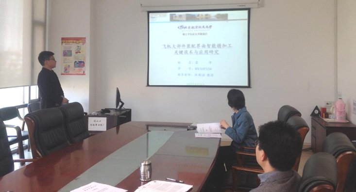博士生雷沛做了題為《飛機(jī)大部件裝配界面智能精加工關(guān)鍵技術(shù)與應(yīng)用研究》的開題報告,結(jié)合C919型號需求,以飛機(jī)大部件裝配界面為研究對象,以數(shù)字化智能制造為背景,綜述了大部件裝配界面智能精加工相關(guān)技術(shù)的國內(nèi)外現(xiàn)狀,對大尺寸精加工系統(tǒng)的坐標(biāo)系標(biāo)定技術(shù)、大部件自適應(yīng)裝夾技術(shù)、基于智能語義制造模型的閉環(huán)加工等大部件裝配界面精加工關(guān)鍵技術(shù)方案進(jìn)行了報告,并展示了部分研究成果。研究成果將為實(shí)現(xiàn)飛機(jī)大部件裝配界面的數(shù)字化、智能化精加工提供理論與技術(shù)支持,并為國產(chǎn)C919大飛機(jī)總裝做出貢獻(xiàn)。
