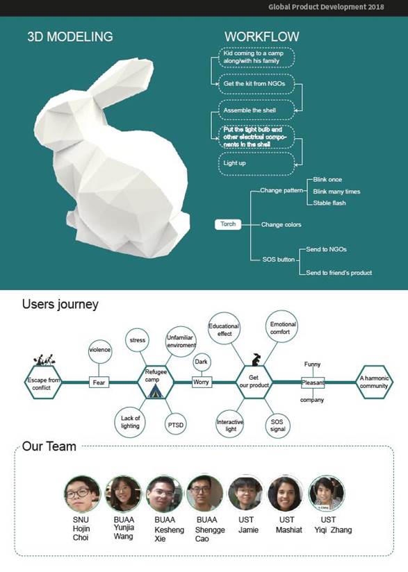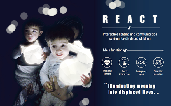 由于戰(zhàn)爭(zhēng)、氣候變化、政治動(dòng)亂等原因,全世界目前約有6850萬(wàn)人流離失所,其中超過(guò)51%的是18歲以下的兒童。從關(guān)心難民兒童的精神健康出發(fā),REACT團(tuán)隊(duì)設(shè)計(jì)了一種難民兒童陪伴燈,作為難民兒童的日常玩具、應(yīng)急設(shè)備以及與其他人互動(dòng)的工具。