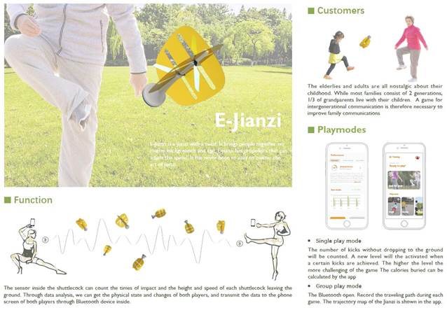 由于中國(guó)社會(huì)經(jīng)濟(jì)快速發(fā)展,代際間差異愈發(fā)顯著,孩子與父母、爺爺奶奶之間的代溝成為了不可忽視的社會(huì)難題。為了解決這一問(wèn)題,Real團(tuán)隊(duì)將傳統(tǒng)游戲——毽子,通過(guò)近距離傳輸技術(shù)與手機(jī)等計(jì)算設(shè)備連接在一起,賦予老一輩的傳統(tǒng)毽子更豐富、有趣的玩法,吸引年輕一代小朋友,從而通過(guò)游戲搭建孩子與父輩祖輩溝通的橋梁。另一方面,E-Jianzi(智能毽子)也能減少小朋友們的“屏幕時(shí)間”,讓孩子們走出屋子,與家人一起鍛煉玩耍。