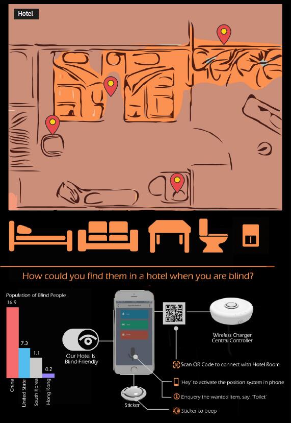全球范圍內(nèi)絕大多數(shù)視障人士的主要活動(dòng)場(chǎng)所都是在室內(nèi),幾乎所有的視障人士都存在找東西和定位的困難,這導(dǎo)致他們?cè)诩抑械莫?dú)立生活困難重重,獨(dú)自旅游出行更是難上加難。Edge團(tuán)隊(duì)利用WiFi和藍(lán)牙技術(shù),開(kāi)發(fā)了一款智能定位貼片,并將現(xiàn)有的智能家居設(shè)備與我們的產(chǎn)品結(jié)合,最終實(shí)現(xiàn)對(duì)室內(nèi)常見(jiàn)物品如水杯、藥瓶,以及房間設(shè)施如冰箱、衣柜等的定位。同時(shí)實(shí)現(xiàn)利用手機(jī)直接操控室內(nèi)家電的功能,幫助視障人士能夠在家中更好地獨(dú)立生活。同時(shí),此款產(chǎn)品也可以成為無(wú)障礙酒店的標(biāo)配,使視障人士在陌生環(huán)境居住時(shí)也能盡快找到需要的設(shè)施。