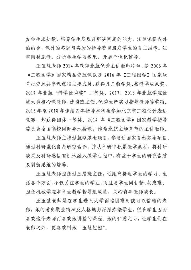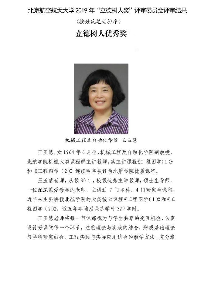 2019年8月27日,經(jīng)北京航空航天大學(xué)2019年“立德樹人獎(jiǎng)”評(píng)審委員會(huì)評(píng)審,評(píng)選出“立德樹人優(yōu)秀獎(jiǎng)”教師9名,我院王玉慧、喬立紅老師喜獲“立德樹人優(yōu)秀獎(jiǎng)”。9月9日下午,學(xué)校在晨興音樂(lè)廳召開慶祝第35個(gè)教師節(jié)表彰大會(huì),會(huì)上對(duì)我院王玉慧、喬立紅兩位立德樹人獎(jiǎng)獲獎(jiǎng)教師進(jìn)行了表彰。