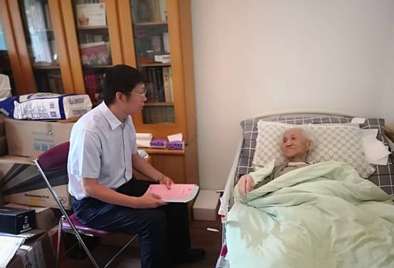 2018年6月28日,北航黨委書記曹淑敏和機(jī)械學(xué)院分黨委書記鄧怡看望郭可謙先生