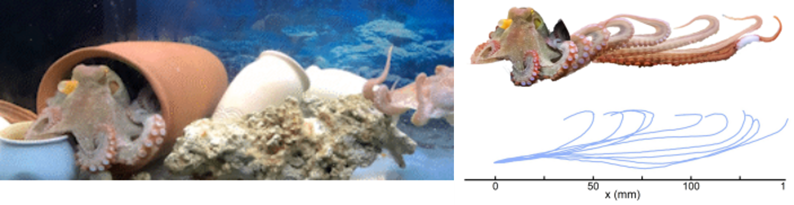 于是,研究團(tuán)隊(duì)購(gòu)買(mǎi)了多批章魚(yú),在實(shí)驗(yàn)室人工創(chuàng)設(shè)出海水環(huán)境,精心培育、耐心觀察,逐漸熟知章魚(yú)的生物習(xí)性,并通過(guò)高速相機(jī)等專(zhuān)業(yè)設(shè)備進(jìn)行觀測(cè),獲取生物運(yùn)動(dòng)學(xué)數(shù)據(jù),然后探索數(shù)據(jù)背后章魚(yú)抓捕物體的具體機(jī)制。