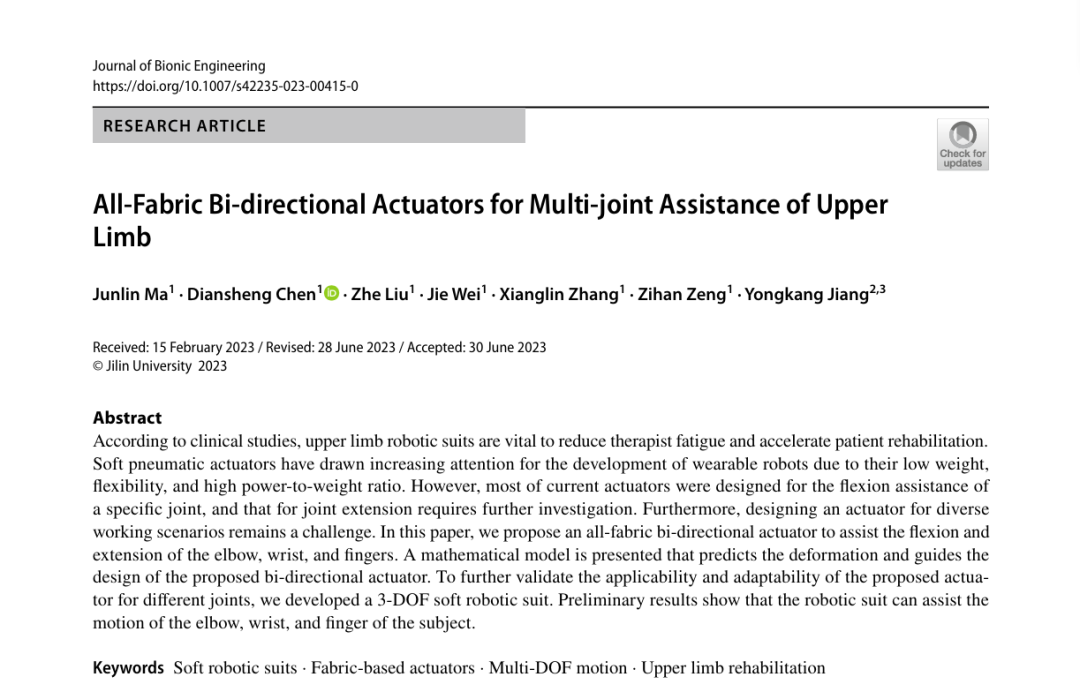All?Fabric Bi?directional Actuators for Multi?joint Assistance of Upper Limb——Journal of Bionic Engineering (SCI)