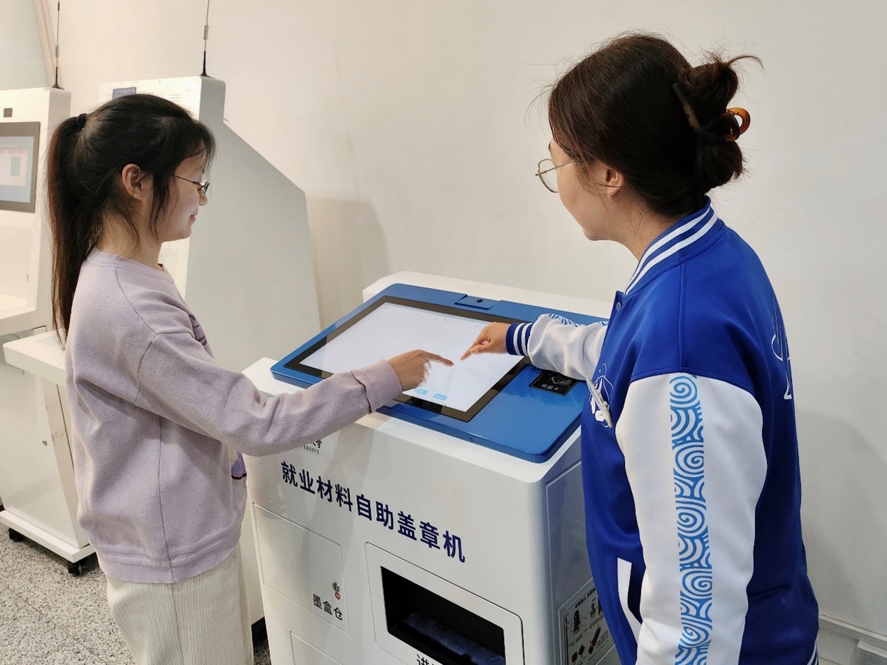 場景一:“同學請坐,請問你要辦理什么業(yè)務?”“老師,我想辦理上海落戶手續(xù)蓋章?!薄昂玫模埳缘?,正在為你辦理。”這是在學生服務大廳學生辦理業(yè)務時的一幕。