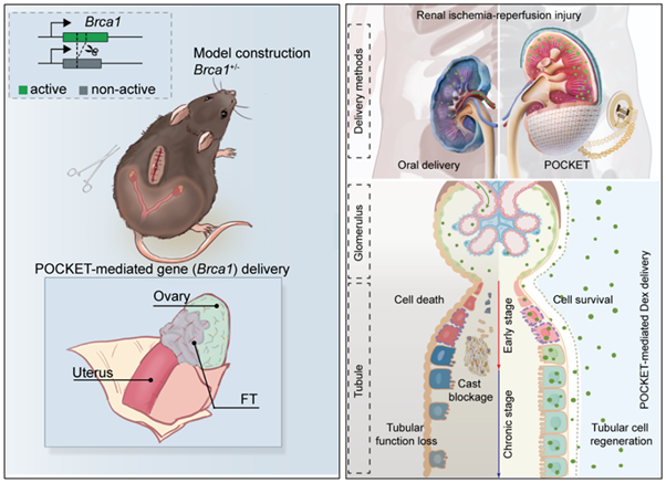圖3 POCKET器件實現(xiàn)卵巢的精準基因治療及時間可控的腎臟長期給藥