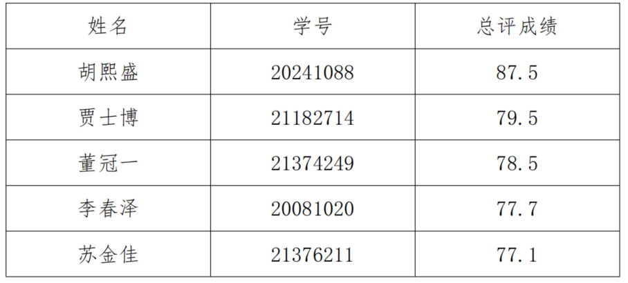 根據(jù)北京航空航天大學(xué)黨校第七十五期學(xué)生入黨積極分子培訓(xùn)班招生要求,院級黨建工作坊按照2023年春季學(xué)期結(jié)業(yè)學(xué)員人數(shù)不超過45%比例,推薦優(yōu)秀結(jié)業(yè)學(xué)員免試入學(xué)。第四期“探奧”黨建工作坊結(jié)業(yè)學(xué)員共12人,按照學(xué)員綜合表現(xiàn)及總評成績排名,擬推薦以下5名學(xué)員免試入學(xué):