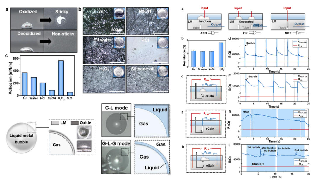 圖1. 液態(tài)金屬表面形態(tài)調(diào)控及液態(tài)邏輯電路構(gòu)建
