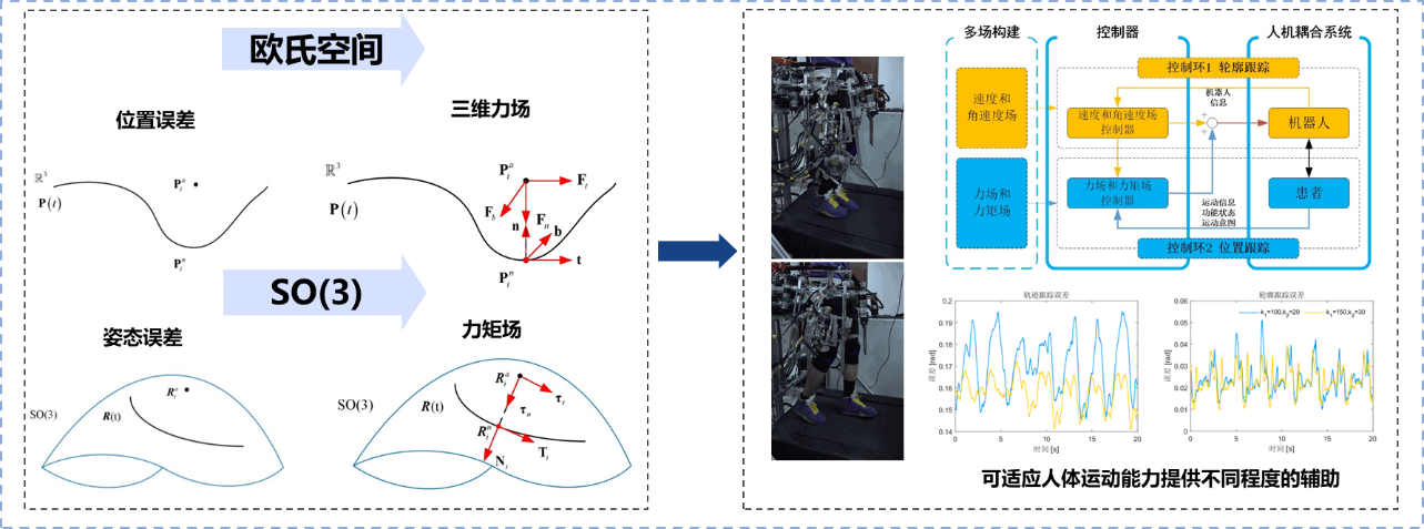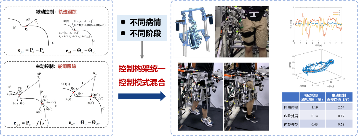 揭示了機(jī)器人輔助力矩對(duì)患者姿態(tài)的影響規(guī)律,提出了主被動(dòng)模式下的輪廓/軌跡跟蹤誤差表達(dá)及其跟蹤控制方法,實(shí)現(xiàn)了多模式混合控制,進(jìn)行了可穿戴實(shí)驗(yàn)驗(yàn)證,提升了機(jī)器人輔助康復(fù)訓(xùn)練過(guò)程與不同病情階段的適應(yīng)性。