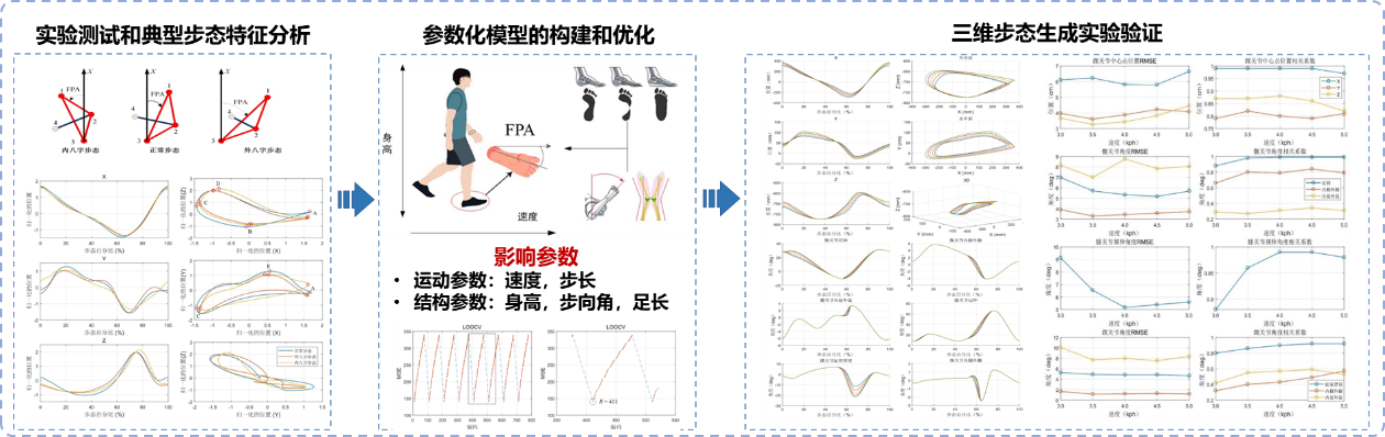 分析了運(yùn)動(dòng)、結(jié)構(gòu)參數(shù)對(duì)三維步態(tài)的影響規(guī)律,提出了一種三維步態(tài)的參數(shù)化生成方法,實(shí)現(xiàn)了適應(yīng)人體不同運(yùn)動(dòng)和結(jié)構(gòu)特征的三維步態(tài)生成,解決了目前多數(shù)外骨骼機(jī)器人生成的平面步態(tài)與人體三維步態(tài)特性以及人體運(yùn)動(dòng)結(jié)構(gòu)特征匹配性不足的問(wèn)題。