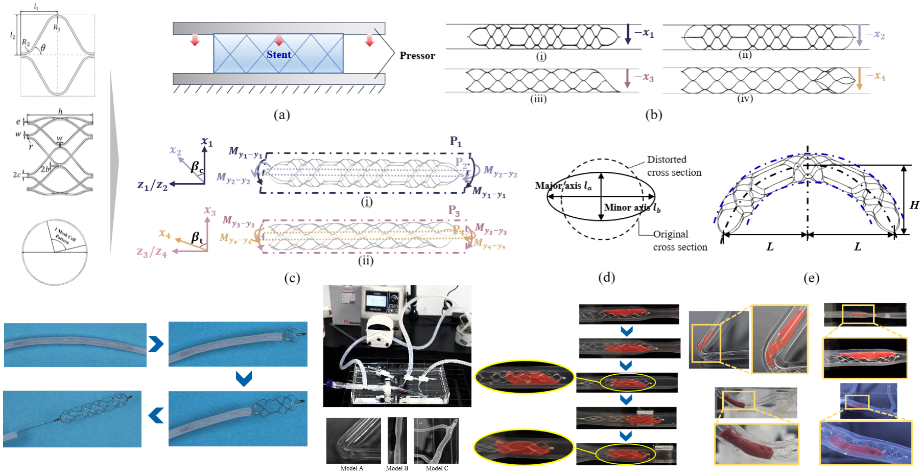 將取栓支架的網(wǎng)格結(jié)構(gòu)與折展機(jī)構(gòu)設(shè)計(jì)相融合,構(gòu)建了取栓支架層級(jí)化構(gòu)型模型,揭示了支架由局部單元到整體結(jié)構(gòu)的構(gòu)型演變規(guī)律。通過參數(shù)優(yōu)化,實(shí)現(xiàn)了結(jié)構(gòu)力學(xué)性能與折展特性的協(xié)同設(shè)計(jì)。研制的樣機(jī)在多平臺(tái)驗(yàn)證中實(shí)現(xiàn)了穩(wěn)定的展收與取栓操作。與商業(yè)支架相比,能更有效防止血栓逃逸,對(duì)偏硬血栓的嵌合能力更強(qiáng),體現(xiàn)出較高的安全性與應(yīng)用潛力。